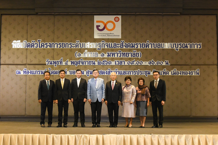 เมื่อวันที่ 4 พฤศจิกายน 2563 กระทรวงการอุดมศึกษา วิทยาศาสตร์ วิจัยและนวัตกรรม (อว.) จัดงานเปิดตัวโครงการยกระดับเศรษฐกิจและสังคมรายตำบลแบบบูรณาการ หรือ 1 ตำบล 1 มหาวิทยาลัย ณ ศูนย์การประชุมอิมแพ็ค ฟอรั่ม เมืองทองธานี โดยมี ศาสตราจารย์พิเศษ ดร.เอนก เหล่าธรรมทัศน์ รัฐมนตรีว่าการกระทรวงการอุดมศึกษา วิทยาศาสตร์ วิจัยและนวัตกรรม (อว.) เป็นประธานเปิดงาน และกล่าวว่า โครงการยกระดับเศรษฐกิจและสังคมรายตำบลแบบบูรณาการ หรือ 1 ตำบล 1 มหาวิทยาลัย เป็นเรื่องที่น่าตื่นเต้นสำหรับทุกฝ่าย เพราะเกิดขึ้นเพื่อแก้ปัญหาเศรษฐกิจ สังคมของประเทศที่จะมีคนว่างงานจำนวนมากจากภาวะเศรษฐกิจอ่อนตัวจากสถานการณ์โควิด – 19 โดยจะมีการจ้างงาน นิสิต นักศึกษา บัณฑิตจบใหม่ รวมถึงประชาชน จำนวน 6 หมื่นคน เพื่อไปทำงานร่วมกับชุมชน จำนวน 3000 ตำบลทั่วประเทศ คนที่ได้รับการจ้างงาน 6 หมื่นคนคือความหวังของครอบครัว และครอบครัวจะดีใจที่ลูกหลานได้งานทำซึ่งย่อมจะช่วยเยียวยารายได้ของครอบครัวได้ อย่างน้อย 1 ปี และ ที่สำคัญมีเรื่องที่น่ายินดียิ่งขึ้นอีก คือ อว.กำลังทำโครงการ 1 ตำบล 1 มหาวิทยาลัย เสนอคณะรัฐมนตรี (ครม.) โดยจะมีการจ้างงานอีก 4,900 ตำบล ครบทุกตำบลจะมีงานทำ ซึ่งนิสิต นักศึกษา บัณฑิตจบใหม่ รวมถึงประชาชน จะได้งานทำถึง 150,000 คน
