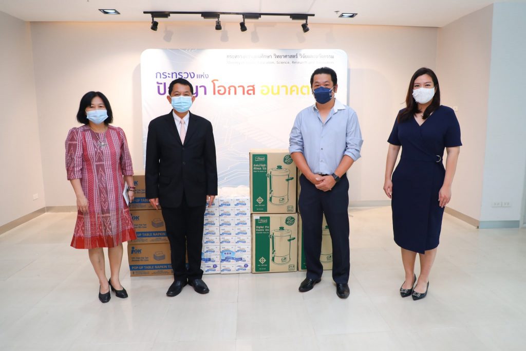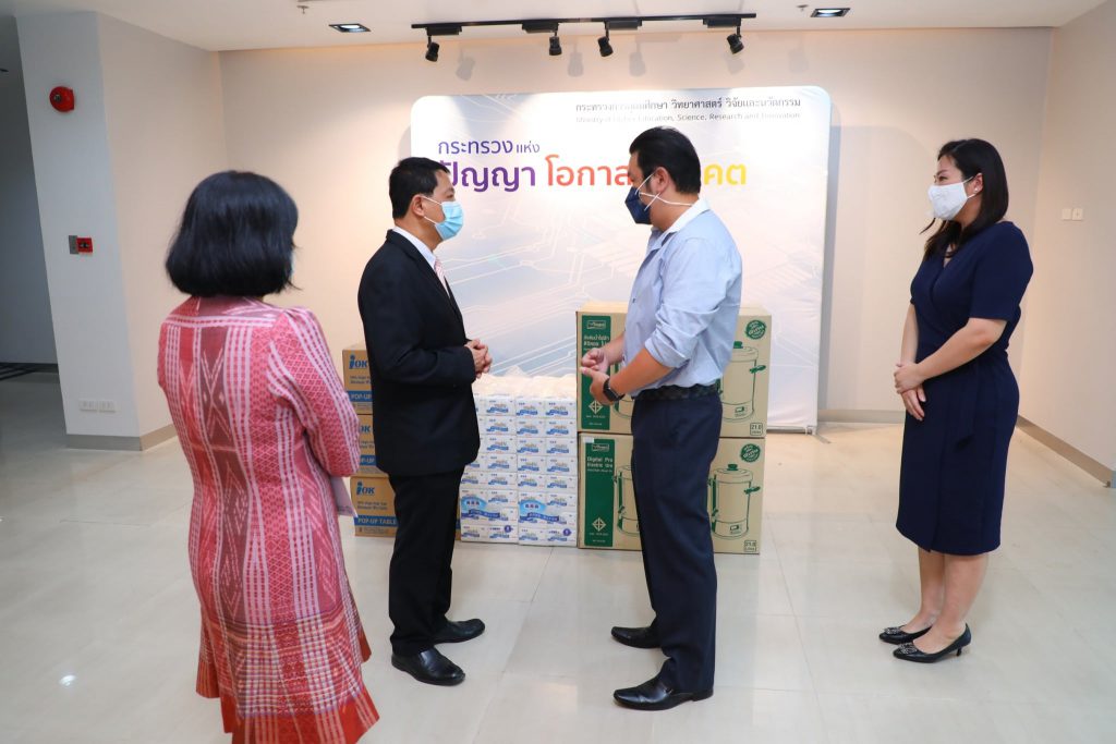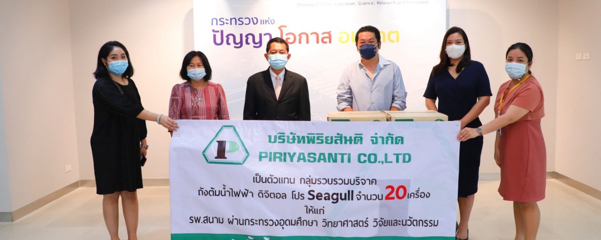 วันนี้ (11 พฤษภาคม 2564) ศ.ดร.นพ.สิริฤกษ์ ทรงศิวิไล ปลัดกระทรวงการอุดมศึกษา วิทยาศาสตร์ วิจัยและนวัตกรรม (อว.) รับมอบสิ่งของบริจาค จาก บริษัท พิริยะสันติ จำกัด ผู้แทนจำหน่ายเครื่องครัวและผลิตภัณฑ์ seagull เพื่อสนับสนุนการใช้ประโยชน์ในโรงพยาบาลสนามของ อว. โดยรายนามสิ่งของบริจาคมีดังต่อไปนี้ หม้อต้มน้ำไฟฟ้า ดิจิตอล นกนางนวล จำนวน 10 ใบ ขนาด 21 L, หม้อต้มน้ำไฟฟ้า ดิจิตอล นกนางนวล จำนวน 10 ใบ ขนาด 36.5 L และกระดาษทิชชู่ จำนวน 50 แพ็ค รวมมูลค่าทั้งสิ้น 425,370 บาท ณ อาคารพระจอมเกล้า ชั้น 1 สำนักงานปลัดกระทรวง ถนนโยธี