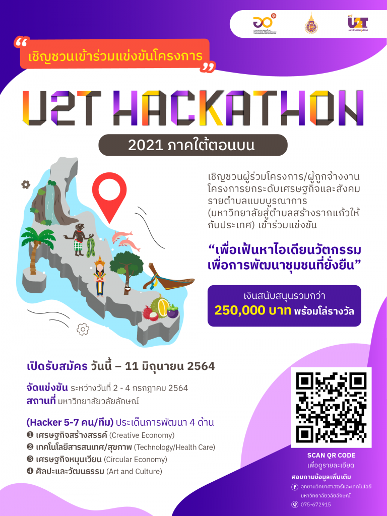 สถานที่ : มหาวิทยาลัยวลัยลักษณ์ใบสมัครเข้าร่วมการแข่งขัน U2T HACKATHON 2021