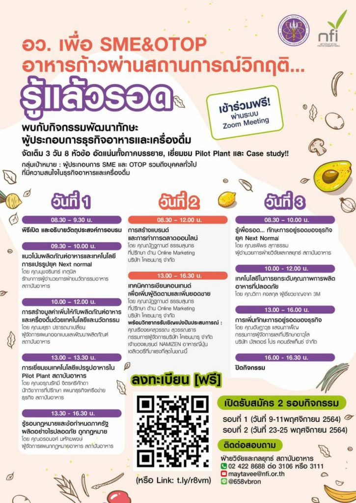 หัวข้อ “อว. เพื่อ SME&OTOP อาหารก้าวผ่านสถานการณ์วิกฤติ…รู้แล้วรอด”