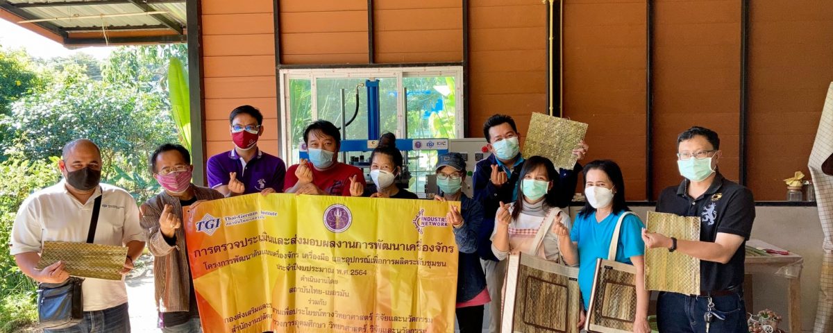ลงพื้นที่ติดตามผลการพัฒนาเครื่องสานและเคลือบผิวใบไม้เพื่อผลิตอุปกรณ์ตกแต่งเครื่องใช้ในครัวเรือน พัฒนาโดย ดร.เฉลิมพล คงจิตต์ มหาวิทยาลัยเชียงใหม่ ภายใต้ โครงการพัฒนาต้นแบบเครื่องจักร เครื่องมือและอุปกรณ์ เพื่อการผลิตระดับชุมชน ที่ติดตั้งเพื่อทดสอบการใช้งาน