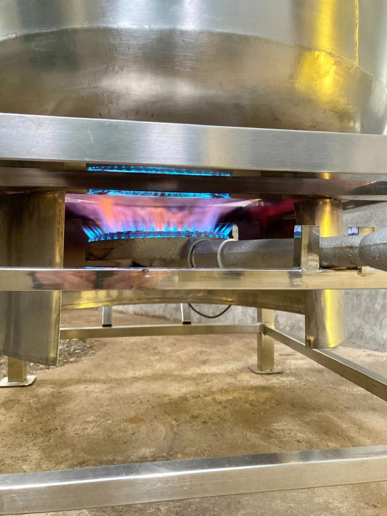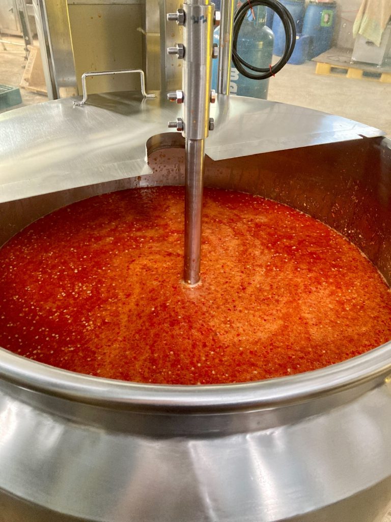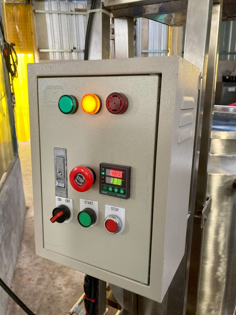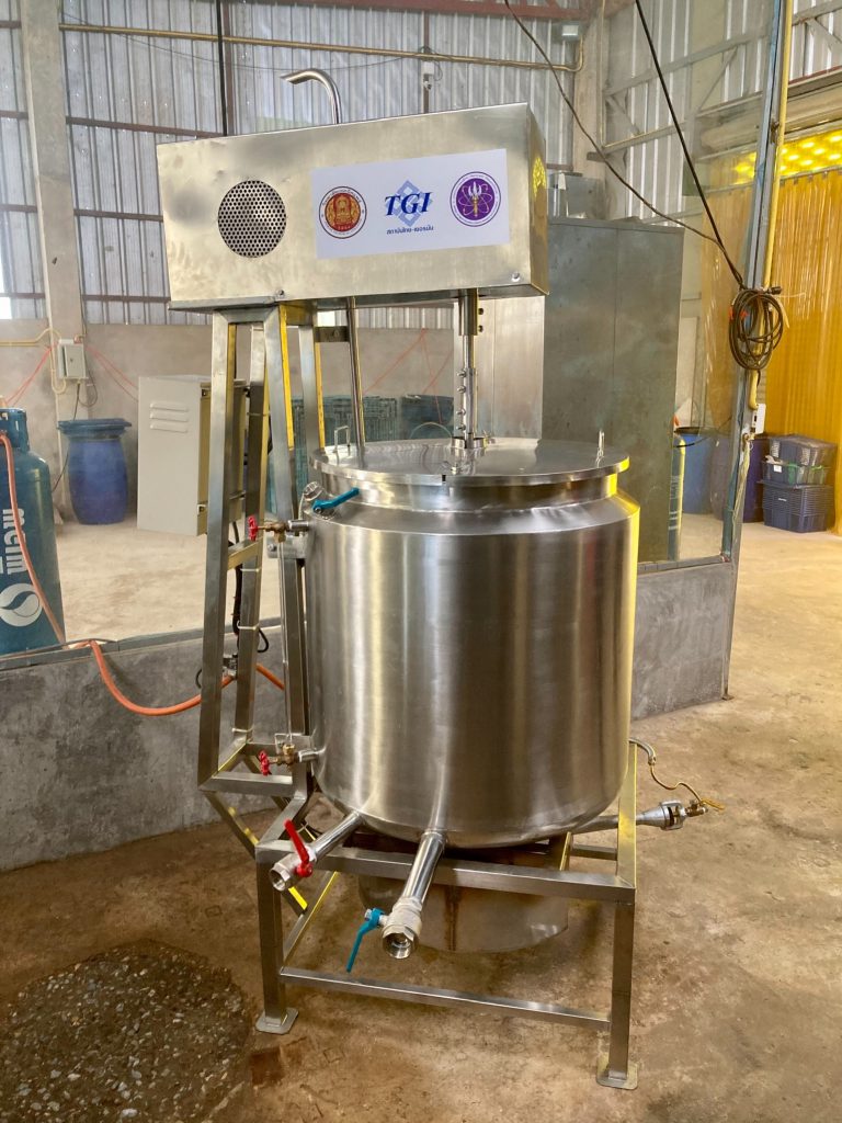 ที่พัฒนาขึ้น ใช้ต้มกวนซอสพริกอัตโนมัติ โดยใช้พลังงานจากไฟฟ้าในการควบคุมและหมุนใบกวนกวนซอสพริก และใช้พลังงานแก็สหุงต้มในการให้ความร้อน และให้ความร้อนด้วยการใช้แก๊สต้มหม้อที่มีน้ำอยู่ล้อมรอบ จากนั้นให้น้ำส่งต่อความร้อนสู่น้ำพริกอีกที ทำให้การต้มให้ความร้อนเท่ากันทั้งหม้อ ส่งผลให้ไม่เกิดการไหม้ตลอดกระบวนการผลิต เครื่องจักรให้ประสิทธิภาพการผลิตมากกว่า 100 กิโลกรัมต่อรอบ สามารถปรับอุณหภูมิ และตั้งเวลาการผลิต