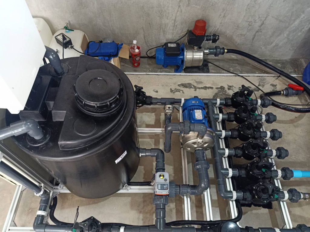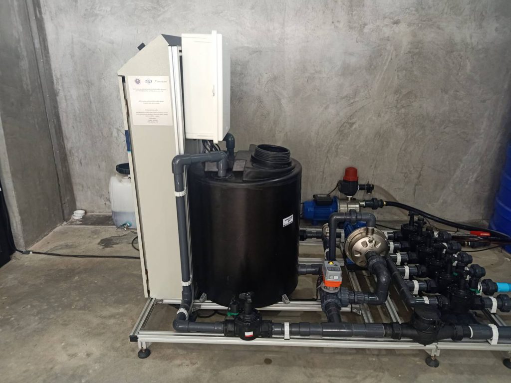 ณ ต.ราชาเทวะ อ.บางพลี จ.สมุทรปราการ ภายใต้ “โครงการพัฒนาระบบอัตโนมัติ/สมาร์ทเทคโนโลยี เพื่อเพิ่มขีดความสามารถของภาคการผลิตและบริการ” โดยผลงานนี้เป็นระบบการให้น้ำ ปุ๋ย และแร่ธาตุ แก่พืชชนิดต่างๆ ที่ถูกเพาะปลูกแบบอัตโนมัติหรือที่เรียกกันว่า เครื่อง Fertigation ซึ่งส่วนใหญ่ยังมีจำหน่ายเฉพาะในต่างประเทศ มีราคาค่อนข้างสูง และระบบนี้จะครอบคลุมเฉพาะผืชที่ทำการเพาะปลูกได้ในต่างประเทศเท่านั้น ซึ่งผลงานนี้จะช่วยแก้ไขปัญหาต่างๆ เหล่านี้ได้ ช่วยเพิ่มอัตราการให้ผลผลิตของพืชที่ทำการเพาะปลูกให้ได้ตามที่ต้องการ และช่วยลดการใช้แรงงานคนในบริเวณพื้นที่เพาะปลูกขนาดใหญ่ เนื่องจากผลงานนี้สามารถควบคุมการจ่ายสารละลายต่างๆ ทั้ง น้ำ ปุ๋ย และธาตุอาหารต่างๆ ให้แก่พืชที่ทำการเพาะปลูกในโรงเรือนภายในประเทศ ให้เป็นไปอย่างเหมาะสมและตามความต้องการของพืชแต่ละชนิดในแต่ละช่วงระยะเวลาการเจริญเติบโต โดยอาศัยหลักการดูดสารละลายต่างๆ ที่ต้องการผ่านปั๊มรีดสายยาง (Peristatic Pump) โดยใช้โปรแกรมคอมพิวเตอร์แบบอัลกอริทึม (Algorithm) มีการติดตั้งระบบ Sensor มาวิเคราะห์ปัจจัยสภาพแวดล้อมต่างๆ ที่จำเป็นต่อการเจริญเติบโตของพืช เช่น อุณหภูมิ ความชื้น ความเป็นกรดด่างในดิน (pH) เป็นต้น และใช้เทคโนโลยี IOT มาควบคุมการปิด-เปิดของวาล์ว ซึ่งจะช่วยผู้ใช้งานมีความสะดวก สามารถใช้งานควบคุมและสั่งการปิดเปิดวาล์วได้จากทุกที่ผ่านระบบอินเตอร์เน็ต นอกจากนี้ยังมีการออกแบบและติดตั้ง Sensor ให้มีการส่งข้อมูลแจ้งปัญหาต่างๆ ที่เกิดขึ้นในระหว่างการใช้งานให้แก่ผู้ผลิต เพื่อให้สามารถเข้าไปดูแลบำรุงรักษาต่างๆ ได้อย่างทันที หากมีความบกพร่องหรือมีปัญหาต่างๆ ที่เกิดขึ้นในระหว่างการใช้งาน