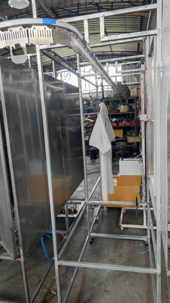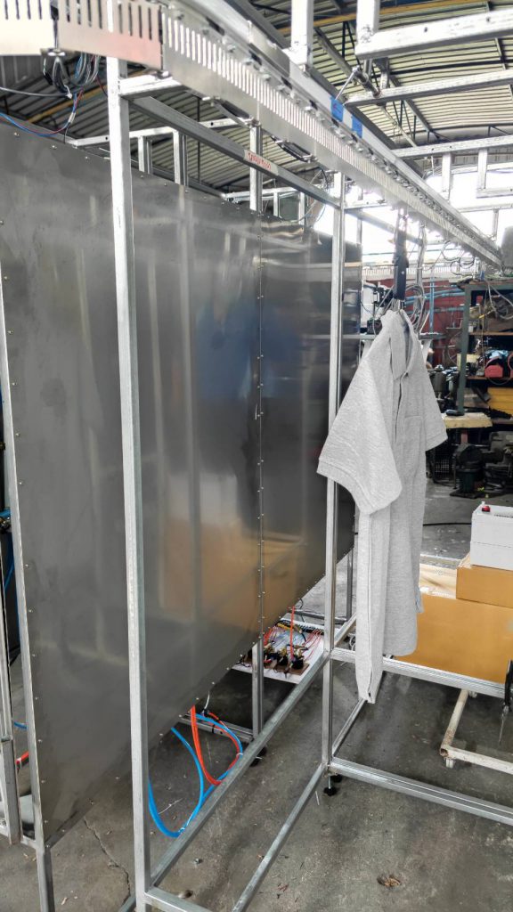ที่ถูกพัฒนาขึ้นโดย ห้างหุ้นส่วนจำกัด ที เจ ซัพพลาย ซึ่งถูกติดตั้งเพื่อนำไปใช้งานให้แก่ ห้างหุ้นส่วนจำกัด ที เจ ซัพพลาย ณ แขวงแสมดำ เขตบางขุนเทียน กรุงเทพมหานคร ภายใต้ “โครงการพัฒนาระบบอัตโนมัติ/สมาร์ทเทคโนโลยี เพื่อเพิ่มขีดความสามารถของภาคการผลิตและบริการ” ห้างหุ้นหุ้นส่วนจำกัด ที เจ ซัพพลาย ดำเนินธุรกิจผลิตเครื่องใช้ไฟฟ้า ได้แก่ เสาอากาศทีวี เตารีดไฟฟ้า เครื่องยืดผม ไฟฉาย ปลั๊กไฟ เป็นต้น แต่มีความต้องการขยายธุรกิจการให้บริการ รีดผ้าแบบอัตโนมัติ เพื่อเป็นการอำนวยความสะดวกและสามารถตอบสนองความต้องการของลูกค้าสมัยใหม่ ทำให้มีจุดเด่นและสร้างความแตกต่างกับร้านรีดผ้าที่มีอยู่ทั่วๆ ไป โดยองค์ประกอบหลักของระบบนี้ ได้แก่ ระบบสายพานสำหรับการลำเลียงผ้าเข้าสู่ระบบรีดผ้า ระบบกลไกการรับส่งมอบและจัดเก็บผ้า ระบบประตูเปิดปิดอัตโนมัติสำหรับส่วนจัดเก็บผ้า