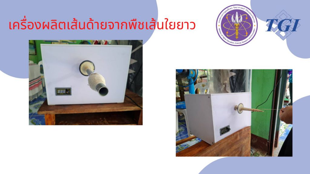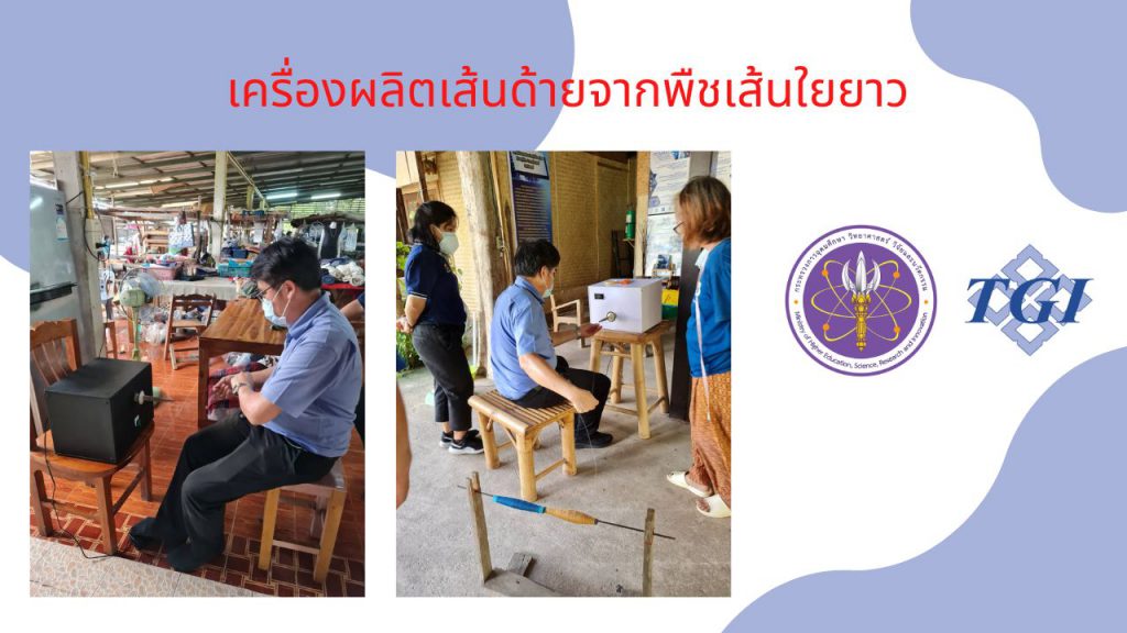 วันที่ 4 สิงหาคม 2565 – เจ้าหน้าที่กองส่งเสริมและประสานเพื่อประโยชน์ทางวิทยาศาสตร์ วิจัยและนวัตกรรม ร่วมกับ สถาบันไทย-เยอรมัน ลงพื้นที่เพื่อส่งมอบ เครื่องผลิตเส้นด้ายจากพืชเส้นใยยาว พัฒนาโดย นายสมนึก วันละ มหาวิทยาลัยเทคนิคแพร่ ภายใต้การขยายผลโครงการพัฒนาต้นแบบเครื่องจักร เครื่องมือและอุปกรณ์ เพื่อการผลิตระดับชุมชน ปีงบประมาณ พ.ศ. 2564 โดยนำเครื่องจักรฯ ไปติดตั้งและสาธิตวิธีการใช้งานให้ผู้ประกอบการ ณ อำเภอเมือง จังหวัดแพร่ 3 แห่ง ได้แก่
