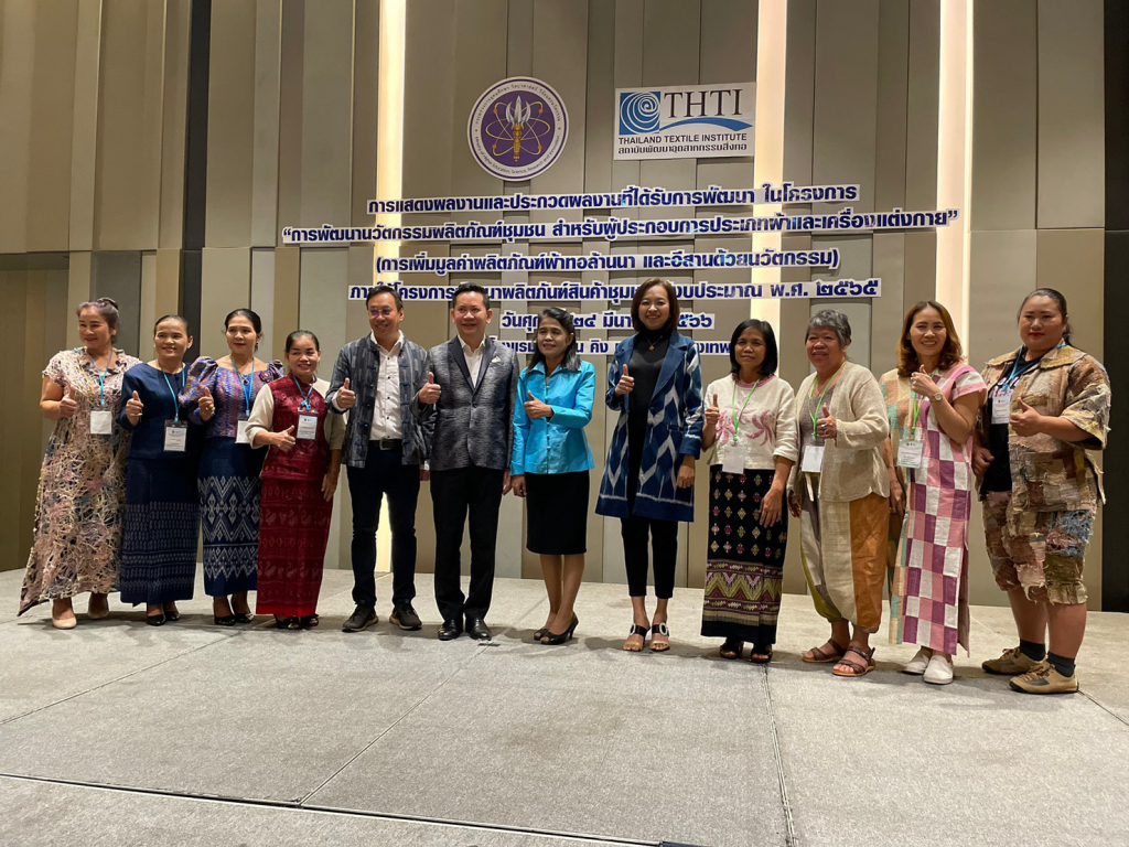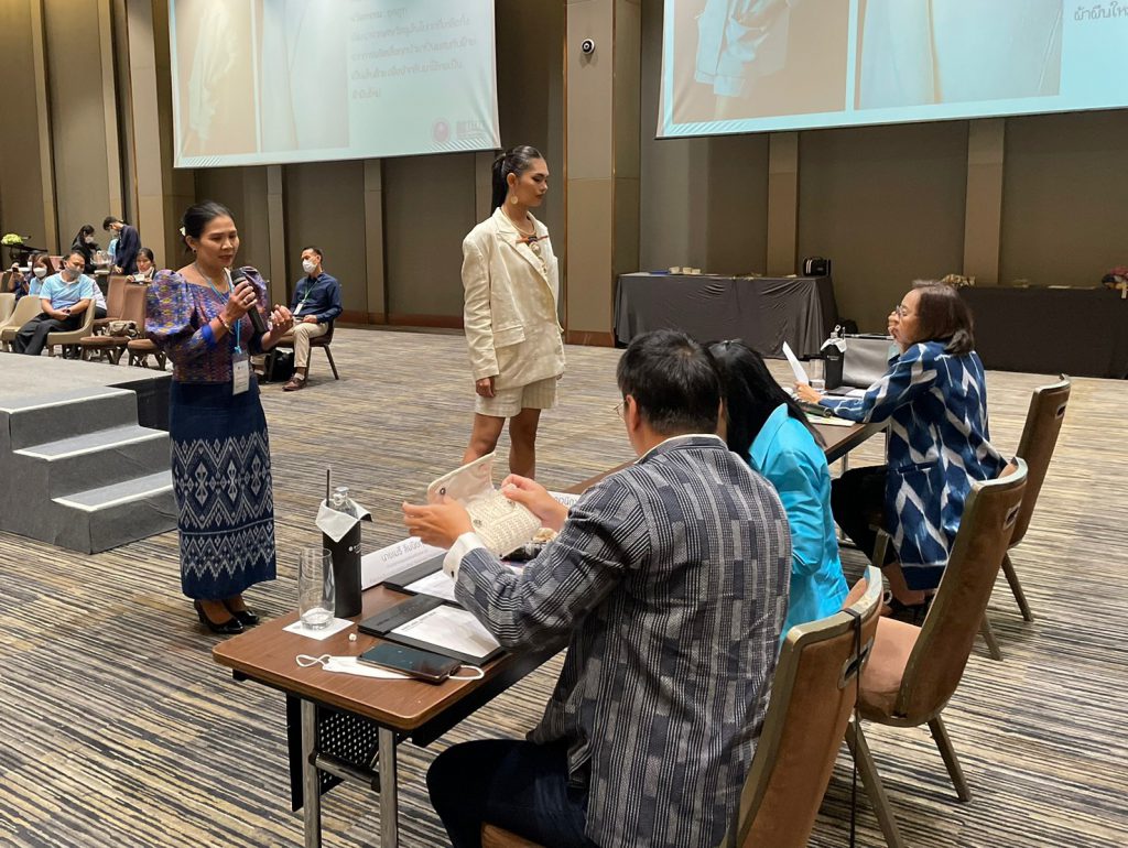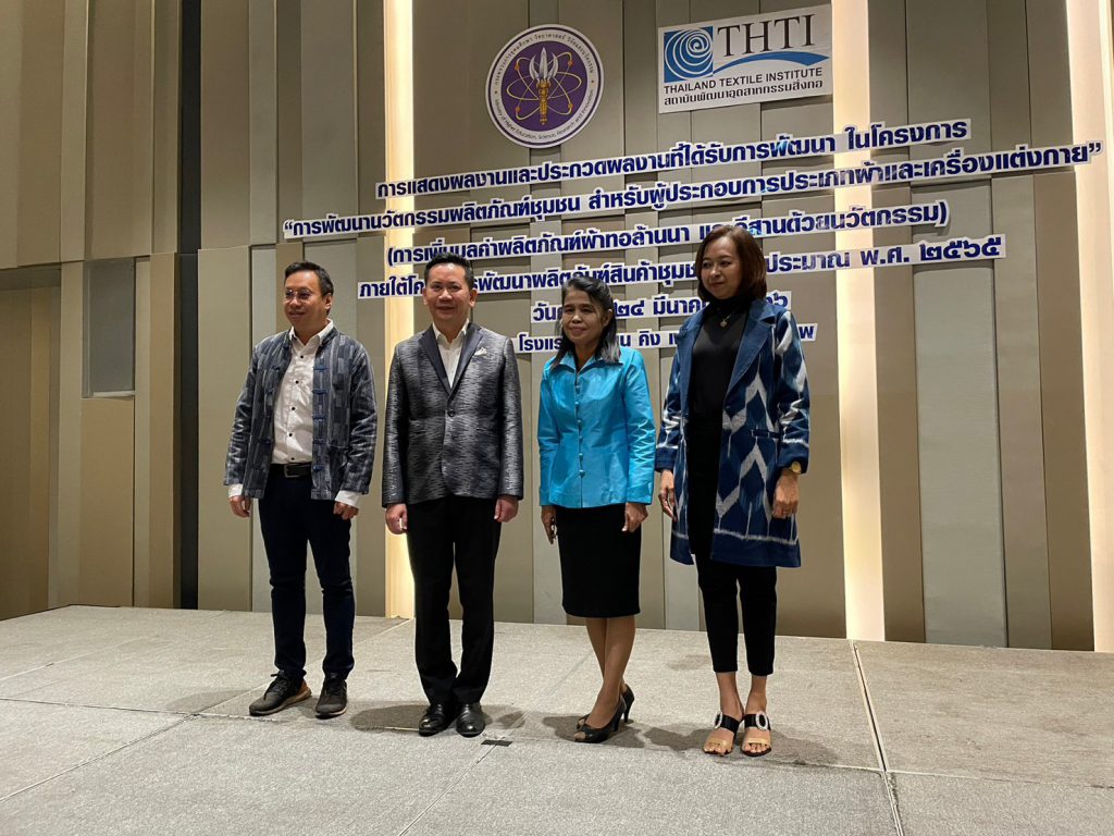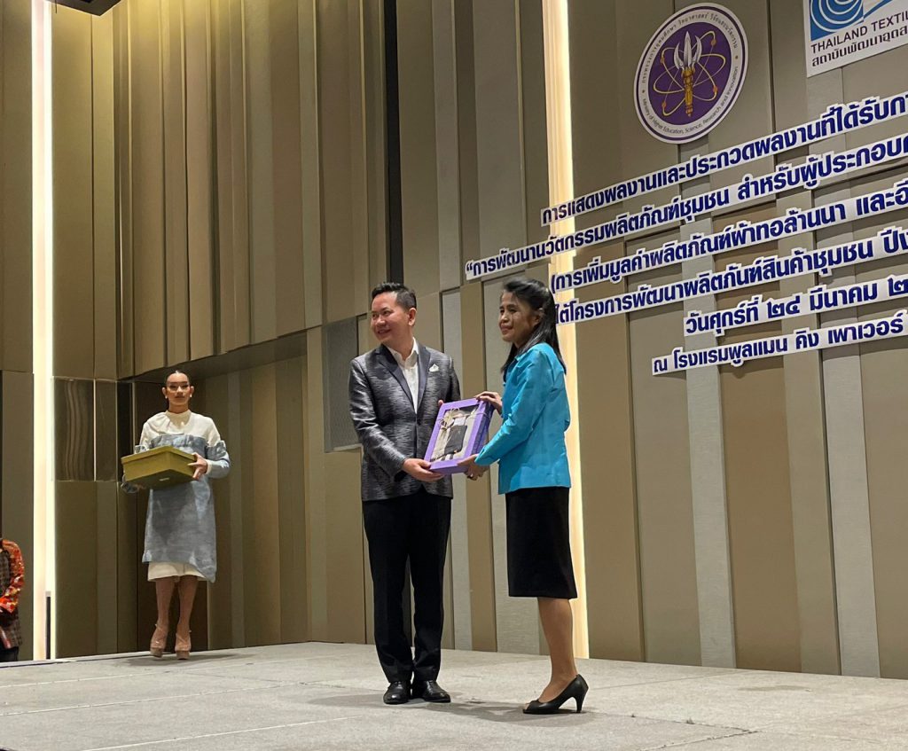 ผู้อำนวยการกลุ่มประสานเครือข่าย อว. ในภูมิภาค และเจ้าหน้าที่ ปค. ภูมิภาค ภาคเหนือ ภาคตะวันออกเฉียงเหนือ และภาคใต้ ได้เข้าร่วมกิจกรรมประกวดและคัดเลือก ผลงานผลิตภัณฑ์นวัตกรรมผ้าทออีสาน และผ้าทอล้านนา ภายใต้โครงการพัฒนาผลิตภัณฑ์สินค้าชุมชน (OTOP) ร่วมกับสถาบันพัฒนาอุตสาหกรรมสิ่งทอ ณ โรงแรมพูลแมน (รางน้ำ) กรุงเทพมหานคร โดย นางวนิดา บุญนาคค้า ผู้อำนวยการกองส่งเสริมและประสานเพื่อประโยชน์ทางวิทยาศาสตร์ วิจัยและนวัตกรรม ได้เป็นผู้กล่าวเปิดงานและได้ให้แนวทางในการพัฒนาและเพิ่มมูลค่าผลิตภัณฑ์ผ้าทอล้านนา และผ้าทออีสาน ด้วยเทคโนโลยีและนวัตกรรมพร้อมทั้งได้มีการมอบรางวัลแก่ผู้ชนะเลิศการประกวด โดยภาคเหนือ ได้แก่กลุ่มกัญชงบ้านห้วยทราย จังหวัดเชียงใหม่และภาคตะวันออกเฉียงเหนือได้แก่กลุ่มผ้าไหมมัดหมี่ย้อมสีธรรมชาติ จากจังหวัดขอนแก่น ได้รับรางวัลมูลค่า 10,000 บาท พร้อมโล่ประกาศเกียรติคุณแก่ผู้ประกอบการที่เข้าร่วมโครงการดังกล่าวฯ