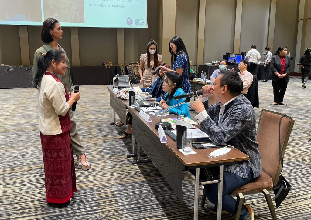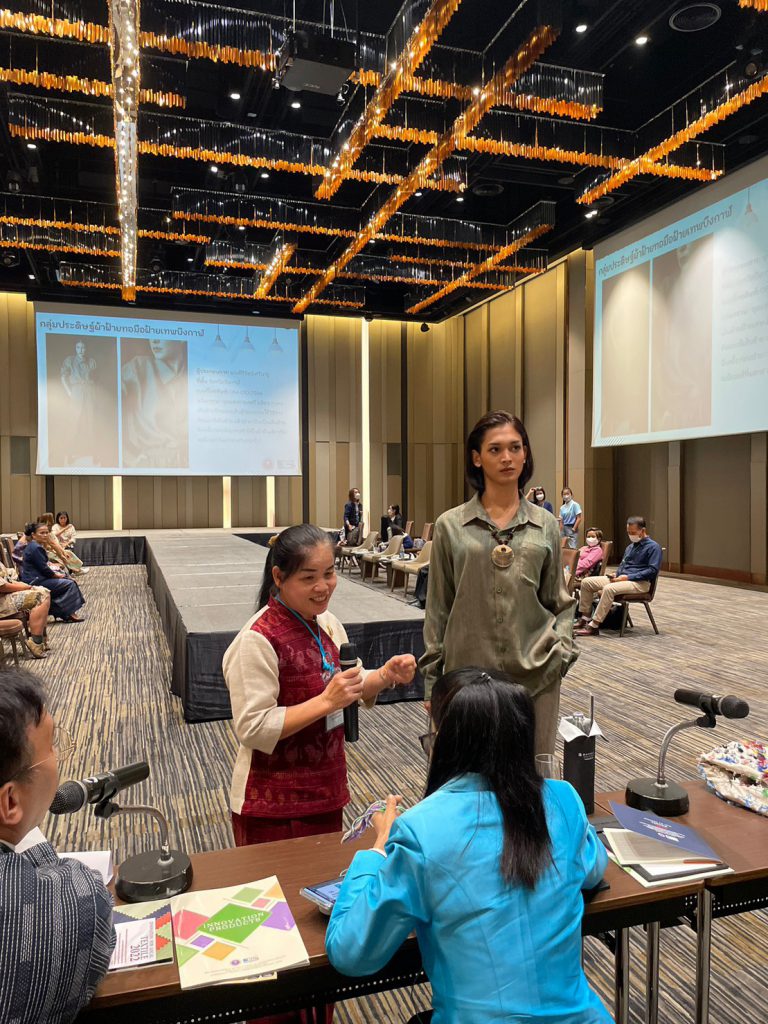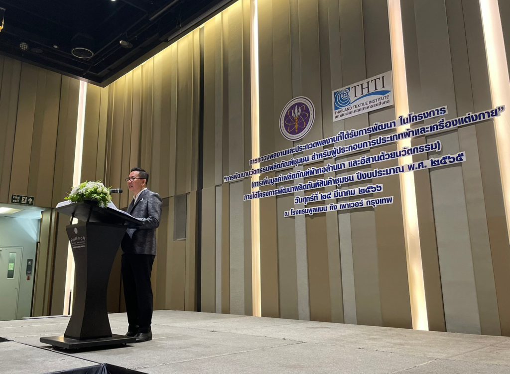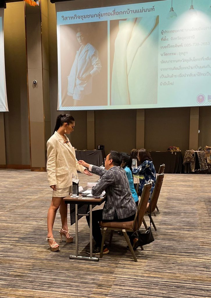 ผู้อำนวยการกลุ่มประสานเครือข่าย อว. ในภูมิภาค และเจ้าหน้าที่ ปค. ภูมิภาค ภาคเหนือ ภาคตะวันออกเฉียงเหนือ และภาคใต้ ได้เข้าร่วมกิจกรรมประกวดและคัดเลือก ผลงานผลิตภัณฑ์นวัตกรรมผ้าทออีสาน และผ้าทอล้านนา ภายใต้โครงการพัฒนาผลิตภัณฑ์สินค้าชุมชน (OTOP) ร่วมกับสถาบันพัฒนาอุตสาหกรรมสิ่งทอ ณ โรงแรมพูลแมน (รางน้ำ) กรุงเทพมหานคร โดย นางวนิดา บุญนาคค้า ผู้อำนวยการกองส่งเสริมและประสานเพื่อประโยชน์ทางวิทยาศาสตร์ วิจัยและนวัตกรรม ได้เป็นผู้กล่าวเปิดงานและได้ให้แนวทางในการพัฒนาและเพิ่มมูลค่าผลิตภัณฑ์ผ้าทอล้านนา และผ้าทออีสาน ด้วยเทคโนโลยีและนวัตกรรมพร้อมทั้งได้มีการมอบรางวัลแก่ผู้ชนะเลิศการประกวด โดยภาคเหนือ ได้แก่กลุ่มกัญชงบ้านห้วยทราย จังหวัดเชียงใหม่และภาคตะวันออกเฉียงเหนือได้แก่กลุ่มผ้าไหมมัดหมี่ย้อมสีธรรมชาติ จากจังหวัดขอนแก่น ได้รับรางวัลมูลค่า 10,000 บาท พร้อมโล่ประกาศเกียรติคุณแก่ผู้ประกอบการที่เข้าร่วมโครงการดังกล่าวฯ