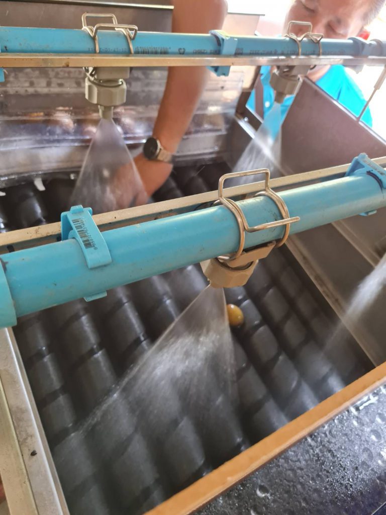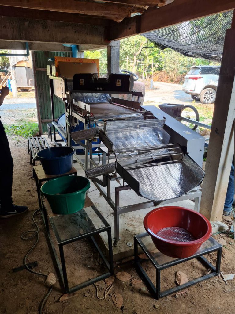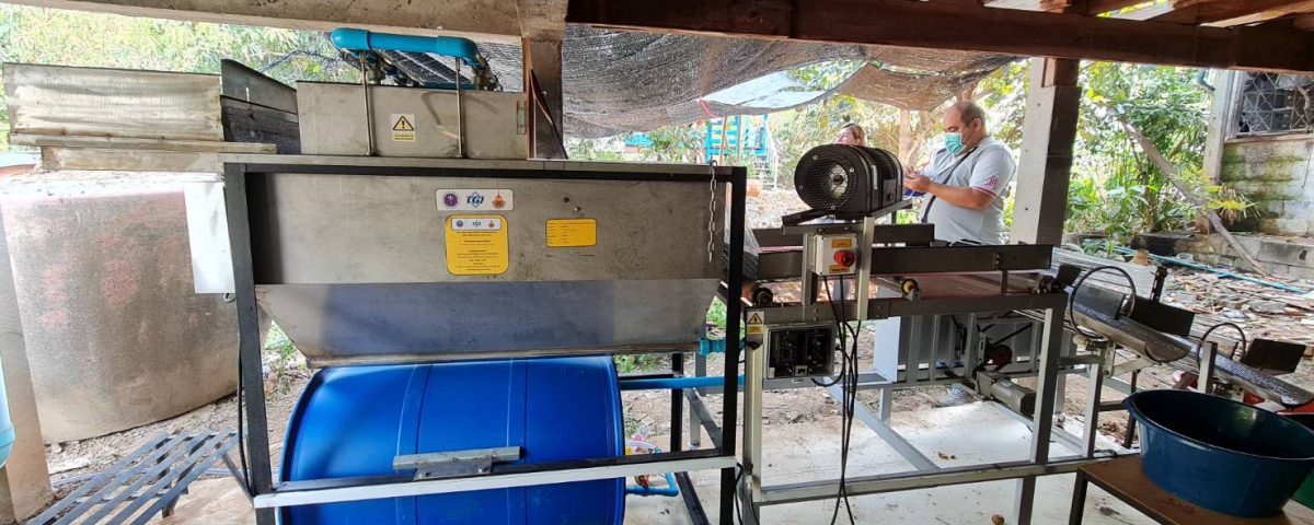 วันที่ 11 เมษายน 2566 เจ้าหน้าที่ กปว. สป.อว. ร่วมกับสถาบันไทย-เยอรมัน ลงพื้นที่ติดตามความก้าวหน้าของโครงการพัฒนาเครื่องล้างและคัดขนาดละมุดระบบกึ่งอัตโนมัติ ภายใต้โครงการพัฒนาต้นแบบเครื่องจักร เครื่องมือและอุปกรณ์เพื่อการผลิตระดับชุมชน ที่สร้างประกอบชิ้นส่วนเครื่องจักรเรียบร้อยแล้ว และกำลังอยู่ระหว่างดำเนินการทดสอบประสิทธิภาพและปรับปรุงแก้ไขการทำงาน ณ วิสาหกิจชุมชนละมุดตำบลท่าตอ ตำบลท่าตอ อำเภอมหาราช จังหวัดพระนครศรีอยุธยา เป็นเครื่องที่พัฒนาขึ้นสำหรับทดแทนแรงงานคน และอำนวยความสะดวกในกระบวนการล้างและคัดแยกขนาดผลละมุด ซึ่งประกอบด้วยส่วนการล้างและส่วนคัดขนาดละมุด โดยละมุดที่เข้าเครื่องจะถูกล้างน้ำด้วยหัวสเปรย์ฉีดน้ำและการขัดสีของผิวละมุดกับพื้นผิวของชุดขัด จากนั้นจะถูกลำเลียงไปเป่าลมเพื่อให้หมาด และคัดขนาดโดยลูกกลิ้งที่เป็นตะแกรงเหล็กเส้นยาวทรงกระบอก ซึ่งผลละมุดจะถูกแยกออกเป็น 3 ขนาด ตกลงสู่ภาชนะที่รองรับสำหรับนำไปจำหน่ายหรือแปรรูปเพื่อจำหน่ายต่อไป ทั้งนี้ เครื่องได้รับการปรับปรุงแก้ไขให้สามารถดำเนินงานได้ตามข้อเสนอแนะที่ผ่านมา เป็นที่พอใจของวิสาหกิจชุมชน และได้ถูกส่งมอบให้กับประธานกลุ่มวิสาหกิจชุมชนสำหรับใช้งาน โดยมีข้อเสนอแนะเพิ่มเติมให้ผู้พัฒนาคำนึงถึงการดูแลเรื่องความสะอาด และการใช้วัสดุให้เหมาะสมกับผลิตภัณฑ์อาหาร เพื่อการต่อยอดสู่มาตรฐานในอนาคตต่อไป