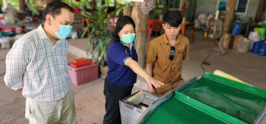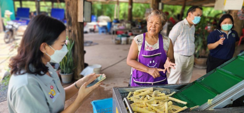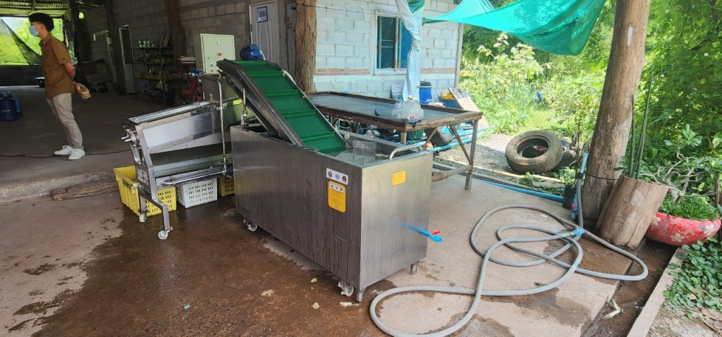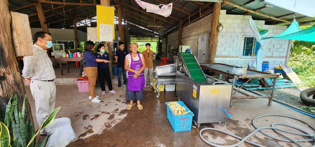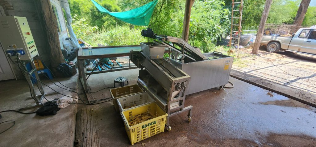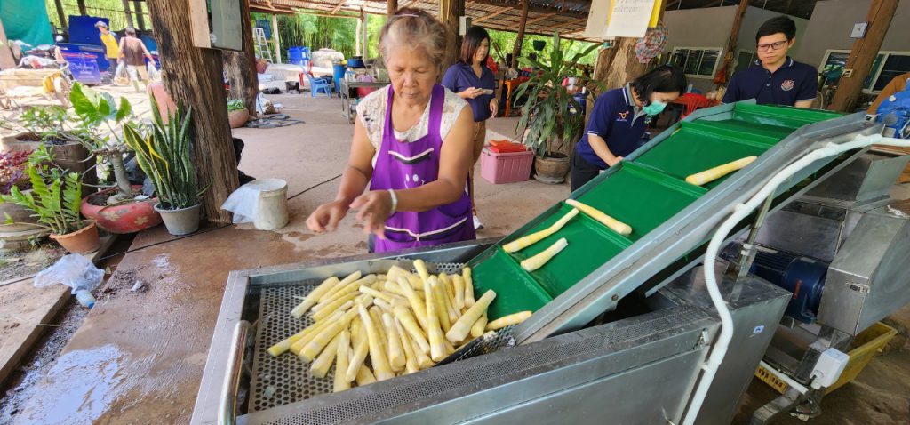 18 พฤษภาคม 2566 เวลา 13.00 น. เจ้าหน้าที่กองส่งเสริมและประสานเพื่อประโยชน์ทางวิทยาศาสตร์ วิจัยและนวัตกรรม ร่วมกับ สถาบันไทย-เยอรมัน ลงพื้นที่เพื่อส่งมอบเครื่องทำความสะอาดและคัดแยกขนาดหน่อไม้แบบกึ่งอัตโนมัติ พัฒนาโดย ดร. สมสุข ไตรศุภกิตติ หน่วยงาน มหาวิทยาลัยราชภัฏมหาสารคาม ภายใต้โครงการพัฒนาต้นแบบเครื่องจักร เครื่องมือและอุปกรณ์ เพื่อการผลิตระดับชุมชน ที่ติดตั้งเพื่อใช้งาน ณ วิสาหกิจชุมชนกลุ่มกระบอกเงินต้นกล้า ตำบลศรีฐาน อำเภอภูกระดึง จังหวัดเลย เครื่องดังกล่าวพัฒนาเพื่อใช้ในการทำความสะอาดและคัดแยกขนาดหน่อไม้ เพื่อนำไปแปรรูปเป็นผลิตภัณฑ์ต่างๆ เช่น หน่อไม้ปี๊บ หน่อไม้ดอง หน่อไม้อบแห้ง เป็นต้น ทั้งนี้ เครื่องดังกล่าวจะใช้คัดแยกหน่อไม้ที่ผ่านกระบวนการต้มและปอกเปลือกเรียบร้อยแล้ว โดยแบ่งการคัดแยกขนาดออกเป็น 4 ขนาด คือขนาดเหรียญ 1 บาท เหรียญ 2 บาท เหรียญ 5 บาท และขนาด OD 3.0 – 3.5 เซนติเมตร โดยมีอัตราการทำงานอยู่ที่ 180 กิโลกรัมต่อ 1 ชั่วโมง และสามารถช่วยลดการใช้แรงงานคนจาก 2 คนเหลือเพียง 1 คน