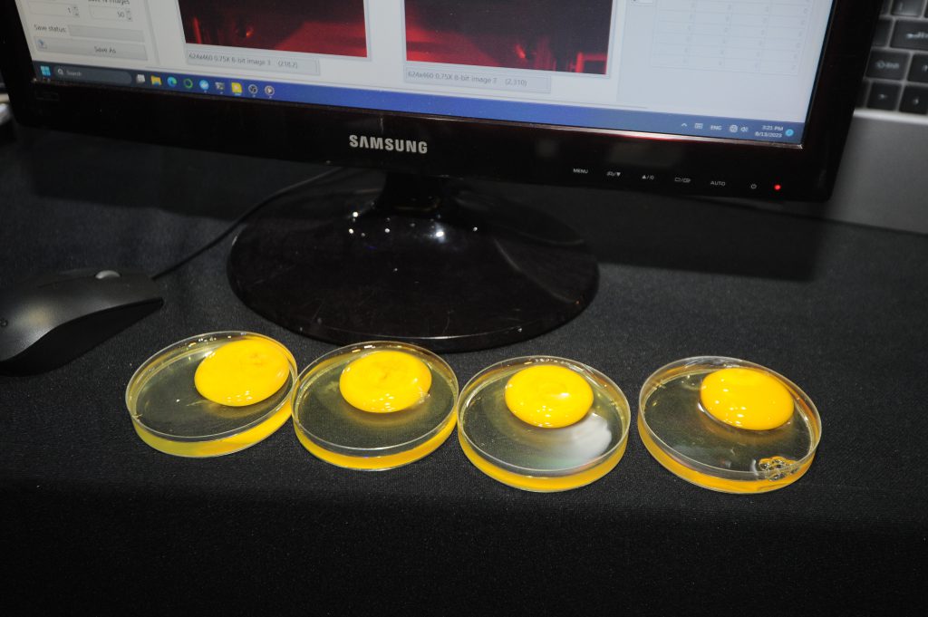 โดยเทคนิคเชิงแสงแบบเลเซอร์สเปกเคิลคอนทราสต์แบบภาพ หรือ LSCI เป็นเทคนิคเชิงแสงที่สามารถวัดความเร็วของอนุภาคขนาดเล็กได้ทั่วทั้งภาพ แม้ว่าอนุภาคที่สนใจจะอยู่ลึกใต้พื้นผิว ไข่ที่มีเชื้อจะมีจุดปฏิสนธิในไข่ และพัฒนาเป็นหัวใจและเส้นเลือดหลังจากฟักได้ 2 วัน ภายในหลอดเลือดมีเม็ดเลือดแดงไหลเวียนอยู่ภายใน ทำให้เทคนิค LSCI สามารถถ่ายภาพการไหลเวียนของหลอดเลือดที่อยู่ภายในไข่ได้ ในทางกลับกันไข่ไก่ผสมไม่ติดจะไม่มีเม็ดเลือดแดง ภาพที่ได้จาก LSCI จึงไม่พบภาพเส้นเลือด ทำให้เทคนิคนี้สามารถแยกไข่ไก่ไม่มีเชื้อได้ เมื่อนำภาพไข่ไก่ 2,000 ฟอง ไปสร้างแบบจำลอง Deep learning เพื่อแยกไข่ไก่ไม่มีเชื้อและมีเชื้อพบว่า สามารถแยกไข่ไก่ได้ถูกต้อง 97% โดยใช้เวลาน้อยกว่า 1 วินาทีต่อฟอง โดยผลงานในโครงการจะถูกนำเสนอแก่ภาคเอกชนผู้ร่วมในขั้นการทดสอบการใช้งานจริง และพร้อมรับถ่ายทอดเทคโนโลยีเพื่อการนำไปใช้ประโยชน์และร่วมสร้างผลกระทบทางเศรษฐกิจให้แก่กิจกรรมความร่วมมือระหว่างภาครัฐและเอกชนต่อไป