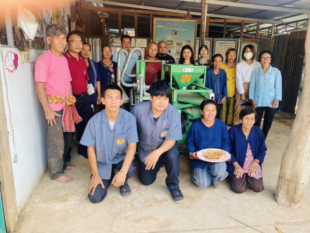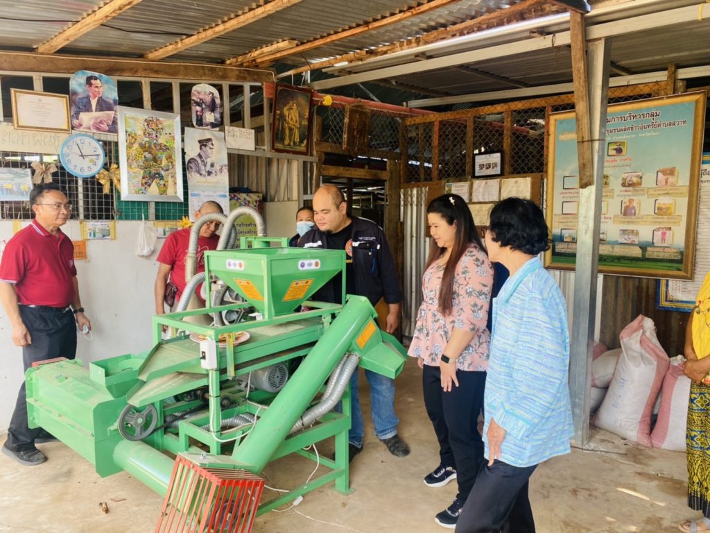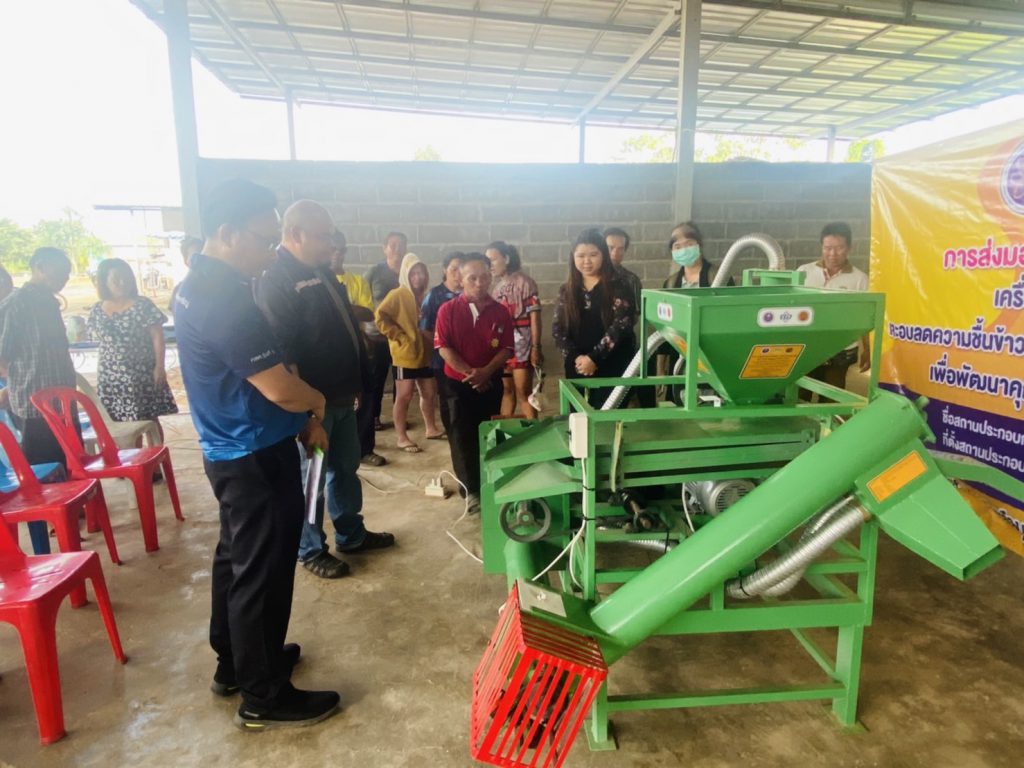 เจ้าหน้าที่กองส่งเสริมและประสานเพื่อประโยชน์ทางวิทยาศาสตร์ วิจัยและนวัตกรรม (กปว.) สำนักงานปลัดกระทรวงการอุดมศึกษา วิทยาศาสตร์ วิจัยและนวัตกรรม (สป.อว.) พร้อมสถาบันไทย – เยอรมัน ลงพื้นที่ตรวจติดตามการดำเนินงานพัฒนาเครื่องจักร เครื่องมือและอุปกรณ์ เพื่อการพัฒนาระดับชุมชน ที่มีการขยายผลจากเครื่องต้นแบบ คือเครื่องคัดแยกวัสดุเจือปนและอบลดความชื้นข้าวเปลือกด้วยลมร้อนจากเชื้อเพลิงชีวมวล พัฒนาโดยนายศักนรินทร์ ผิวเหลือง