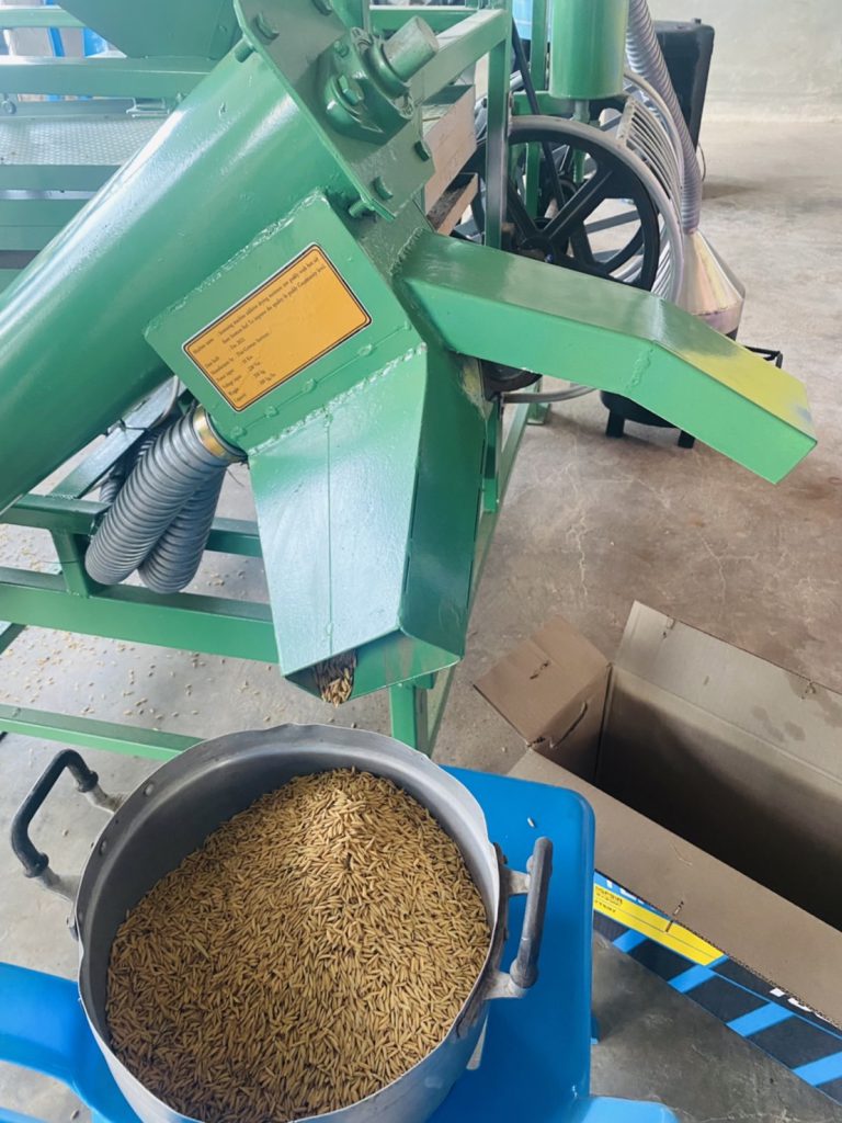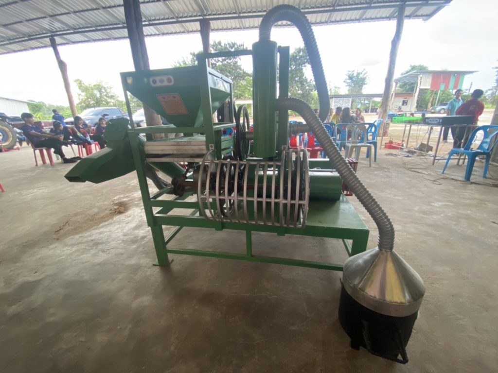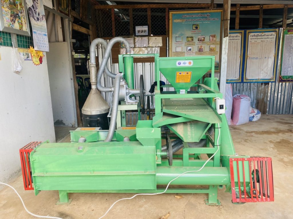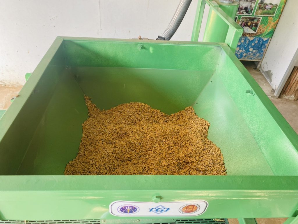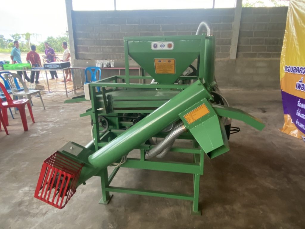 เครื่องคัดแยกวัสดุเจือปนและอบลดความชื้นข้าวเปลือกฯ มีประสิทธิภาพในการคัดแยกวัสดุเจือปนต่างๆ ที่ปนเปื้อนติดมากับข้าวเปลือกหลังจากการเก็บเกี่ยว ลดระยะเวลาในการคัดแยกด้วยสายตาได้เป็นอย่างดี ข้าวเปลือกถูกบรรจุลงถัง