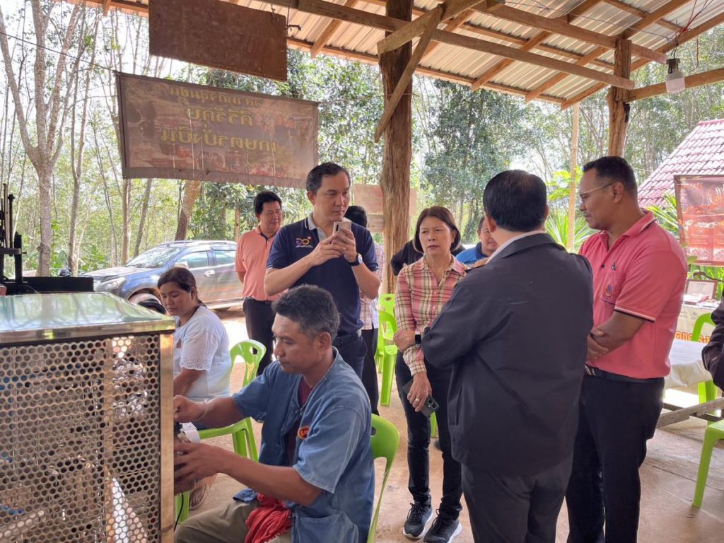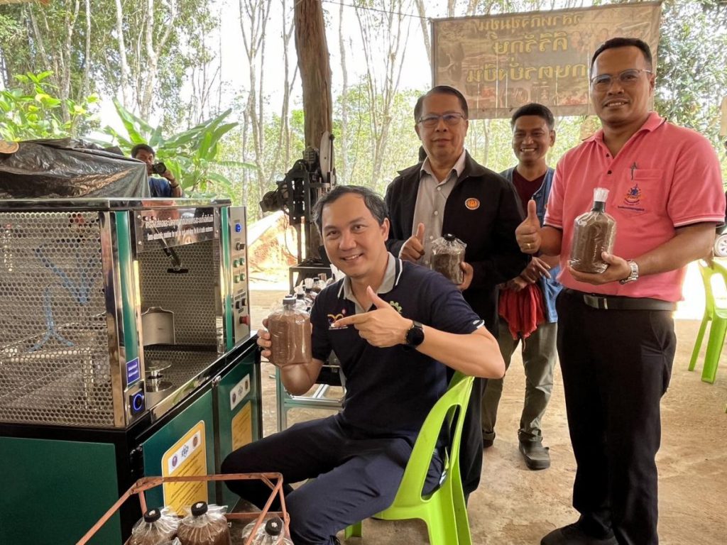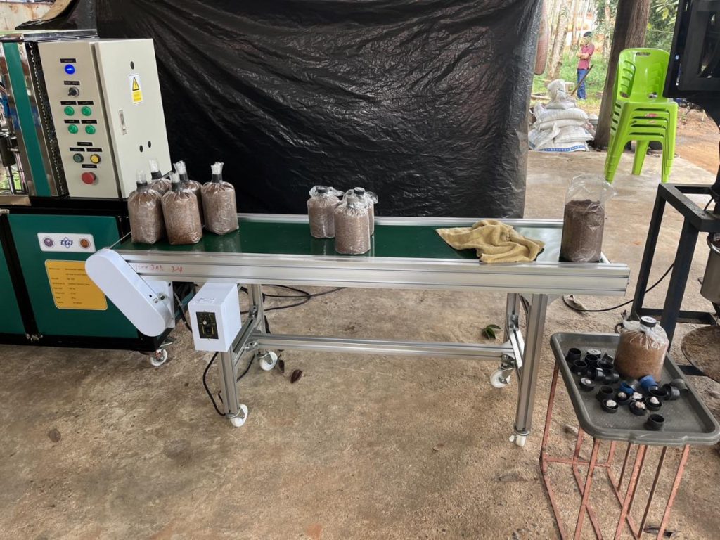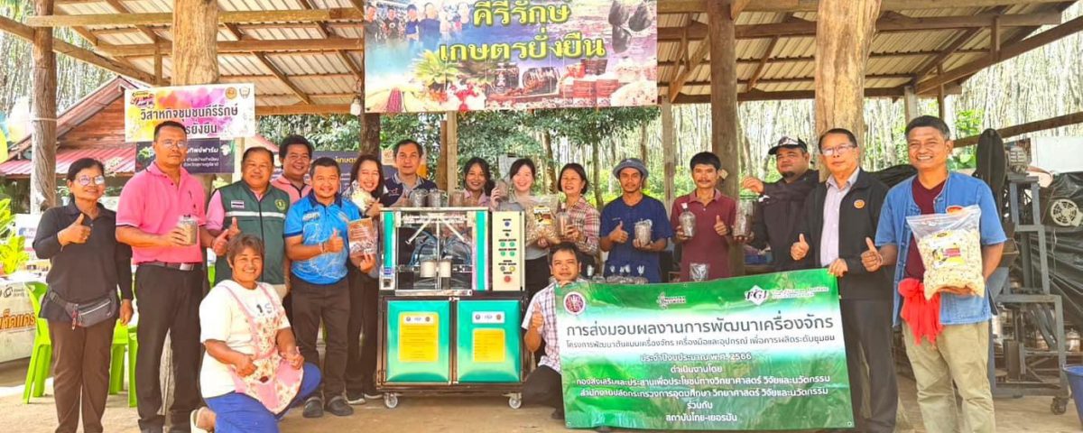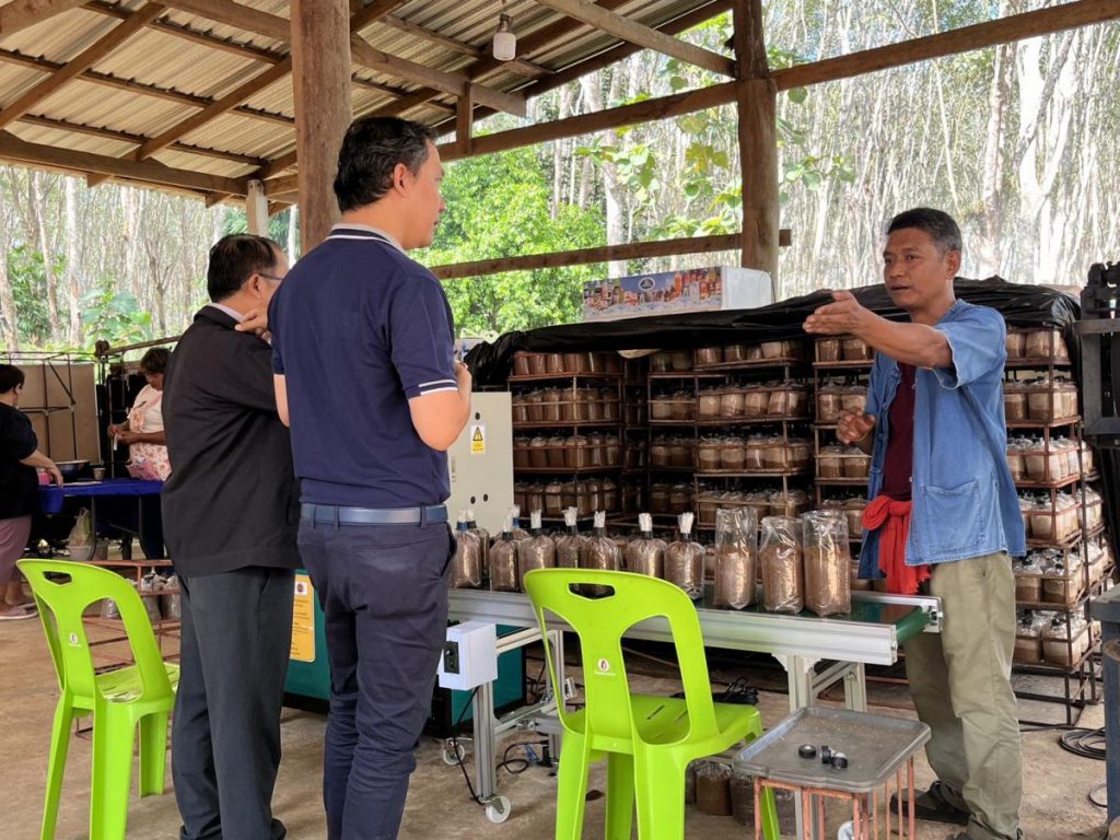 เมื่อวันที่ 19 ธันวาคม 2566 เจ้าหน้าที่สำนักงานปลัดกระทรวงการอุดมศึกษา วิทยาศาสตร์ วิจัยและนวัตกรรม และสถาบันไทย-เยอรมัน ร่วมลงพื้นที่ติดตามความก้าวหน้าการพัฒนาเครื่องใส่คอและปิดจุกถุงก้อนเห็ดแครงระบบกึ่งอัตโนมัติ ภายใต้โครงการพัฒนาต้นแบบเครื่องจักร เครื่องมือและอุปกรณ์ เพื่อการผลิตระดับชุมชน พัฒนาโดย ดร.ธวัชไชย ลิ้มสุวรรณ และคณะจากวิทยาลัยเทคนิคสุราษฎร์ธานี ซึ่งดำเนินการติดตั้งและใช้งานเครื่องจักร ณ วิสาหกิจชุมชนคีรีรักษ์เกษตรยั่งยืน อำเภอคีรีรัฐนิคม จังหวัดสุราษฎร์ธานี
