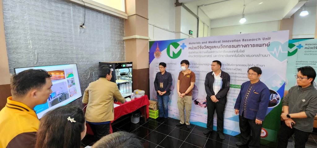 วันที่ 26 ธันวาคม 2566 เจ้าหน้าที่สำนักงานปลัดกระทรวงการอุดมศึกษา วิทยาศาสตร์ วิจัยและนวัตกรรม (สป.อว.) ร่วมกับ สถาบันไทย-เยอรมัน ลงพื้นที่ติดตามการพัฒนาเครื่องขึ้นรูปชิ้นงานทางการแพทย์ด้วยซิลิโคนเหลว สนับสนุนงบประมาณภายใต้โครงการพัฒนาระบบอัตโนมัติ/สมาร์ทเทคโนโลยีเพื่อเพิ่มขีด ความสามารถของภาคผลิตและบริการ พัฒนาโดย นาย ธวัชชัย อาทรกิจ บริษัท บางกอกบลู โอเชี่ยน จำกัด ร่วมกับ ผศ. ดร.ภาคภูมิ จารุภูมิ สาขาวิศวกรรมอุตสาหการ คณะวิศวกรรมศาสตร์ มหาวิทยาลัยเทคโนโลยีราชมงคลล้านนา ซึ่งเป็นศูนย์วิจัยวัสดุและกระบวนการผลิต และยังเป็นหน่วยวิจัยวัสดุและนวัตกรรมทางการแพทย์