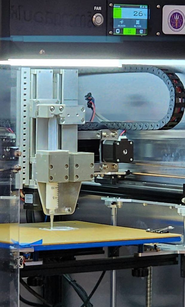 ในทางการแพทย์ มีความต้องการใช้ชิ้นงานซิลิโคนเนื่องจากมีความยืดหยุ่น อ่อนนิ่ม ซึ่งสามารถขึ้นรูปด้วยกระบวนการฉีด หล่อ เท และต้องมีการทำแม่พิมพ์ ซึ่งมีต้นทุนที่สูงและใช้ เวลามากในการผลิต ในขณะที่เครื่องขึ้นรูปซิลิโคนในต่างประเทศมีราคาแพงมาก เครื่องจักรต้นแบบที่พัฒนาขึ้น ใช้ขึ้นรูปชิ้นงานซิลิโคน 3 มิติ ออกแบบชิ้นงานลักษณะตามที่ต้องการในคอมพิวเตอร์ ความเร็วการเคลื่อนที่หัวฉีด 40 – 300 มม.ต่อวินาที ทำงานพร้อมกันได้ 2 หัวฉีด ทำให้สามารถใช้ซิลิโคน 2 ชนิดผสมกันได้ มีระบบไฟเพื่อช่วยให้ซิลิโคนเซ็ตตัว ขนาดชิ้นงานสูงสุดอยู่ที่ 30 × 30 x 20 ซม. โดยชิ้นงานที่ผลิตขึ้น จะนำไปใช้ในทางการแพทย์ โดยความร่วมมือกับ นพ.พัฒนา องคะสุวรรณ โรงพยาบาลนครพิงค์ เชียงใหม่ ในการทดสอบและผลักดันให้เกิดการใช้งานจริงในการรักษาผู้ป่วย