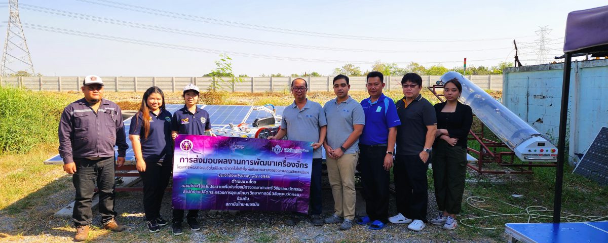 วันที่ 8 มกราคม 2567 เจ้าหน้าที่สำนักงานปลัดกระทรวงการอุดมศึกษา วิทยาศาสตร์ วิจัยและนวัตกรรม (สป.อว.) ร่วมกับ สถาบันไทย-เยอรมัน ลงพื้นที่ติดตามการพัฒนา หุ่นยนต์ทำความสะอาดแผงโซล่าเซลล์แบบอัตโนมัติรุ่น MT-2 ซึ่งได้รับการสนับสนุนงบประมาณภายใต้โครงการพัฒนาระบบอัตโนมัติ/สมาร์ทเทคโนโลยีเพื่อเพิ่มขีดความสามารถของภาคผลิตและบริการ พัฒนาโดย นายมนต์ชัย เทียนทอง บริษัท ไอ นาว จำกัด ร่วมกับ ผศ.ดร.พิพัฒน์ ไพศาลภาณุมาศ สาขาวิชาวิศวกรรมอุตสาหการ มหาวิทยาลัยเทคโนโลยีพระจอมเกล้าพระนครเหนือ ที่ปรึกษาในการดำเนินโครงการ