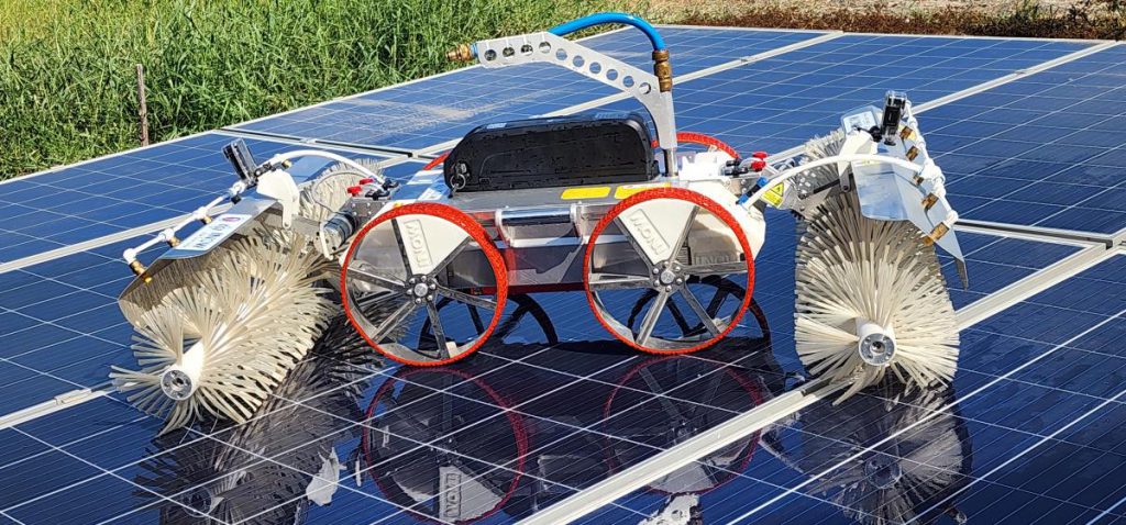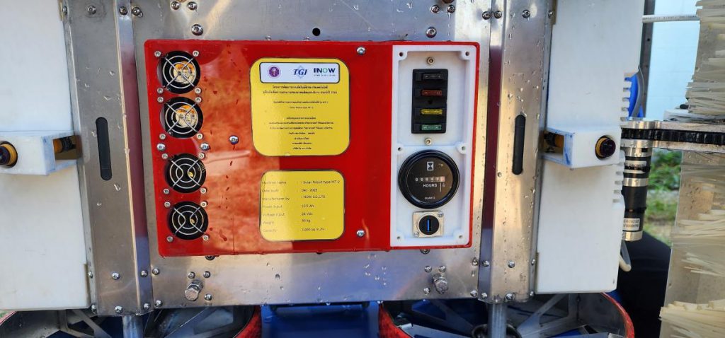 ปัจจุบันแรงงานคนเป็นวิธีการหลักในการทำความสะอาดแผงโซล่าเซลล์ ซึ่งมีทั้งความเสี่ยงในการทำงานบนที่สูง สำหรับแผงที่ติดตั้งบนหลังคาต้องใช้เวลาและแรงงานคนจำนวนมากในการทำความสะอาด นอกจากนี้การใช้คนล้างยังอาจทำให้แผงโซล่าเซลล์เสียหายจากการโดนเหยียบขณะล้างได้ ในขณะที่หุ่นยนต์ทำความสะอาดแผงโซล่าเซลล์ ถูกออกแบบให้มีเซ็นเซอร์และระบบควบคุมที่สามารถทำความสะอาดอัตโนมัติ เพื่อตอบโจทย์สำหรับข้อจำกัดต่างๆ ในความต้องการของแต่ละบริษัท โดยใช้พลังงานไฟฟ้า 500 วัตต์ มีมอเตอร์สำหรับขับเคลื่อนล้อและแปรงลูกกลิ้งทำความสะอาด ซึ่งหุ่นยนต์จะเคลื่อนที่ไปบนแผงโซล่าเซลล์ตามที่กำหนด ในขณะเดียวกันแปรงลูกกลิ้งทำความสะอาดที่อยู่ด้านหน้าและด้านหลังจะหมุนเพื่อกำจัดสิ่งสกปรกบนแผงโซล่าเซลล์ ซึ่งหุ่นยนต์นี้สามารถทำงานบนแผงโซล่าเซลล์ที่ติดตั้งบนหลังคาสูง โดยมีเซ็นเซอร์แจ้งเตือนเพื่อกันหุ่นยนต์ตกจากหลังคา ตัวหุ่นยนต์มีน้ำหนัก 32 – 34 กิโลกรัม สามารถทำงานบนพื้นที่มีความเอียงได้สูงสุด 15 องศา มีความเร็วในการเคลื่อนที่เท่ากับ 25 – 30 เมตรต่อนาที และใช้เวลาทำความสะอาด 7 วินาที ต่อ 1 แผงโซล่าเซลล์