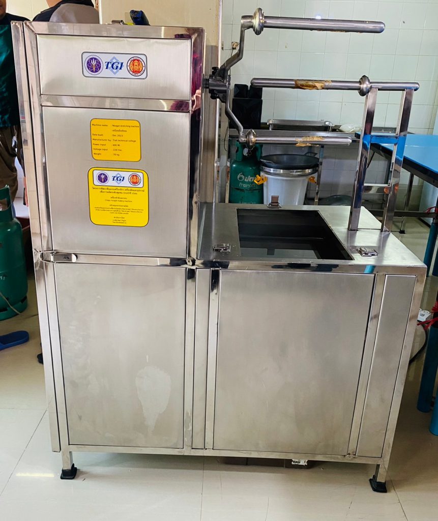 วันอังคารที่ 16 มกราคม 2567 เจ้าหน้าที่กองส่งเสริมและประสานเพื่อประโยชน์ทางวิทยาศาสตร์ วิจัยและนวัตกรรม (กปว.) สำนักงานปลัดกระทรวงการอุดมศึกษา วิทยาศาสตร์ วิจัยและนวัตกรรม (สป.อว.) พร้อมสถาบันไทย – เยอรมัน ลงพื้นที่ตรวจติดตามผลการพัฒนาสร้างเครื่องทำตังเมกรอบ ภายใต้โครงการพัฒนาเครื่องจักร เครื่องมือและอุปกรณ์ เพื่อการผลิตระดับชุมชน พัฒนาโดย นายลีนวัฒน์ วิรัญโท จากวิทยาลัยเทคนิคตราด ดำเนินการติดตั้งและทดสอบการใช้งาน ณ กลุ่มวิสาหกิจชุมชน ก.ไก่ ตังเมกรอบ ตำบลน้ำเชี่ยว อำเภอแหลมงอบ จังหวัดตราด