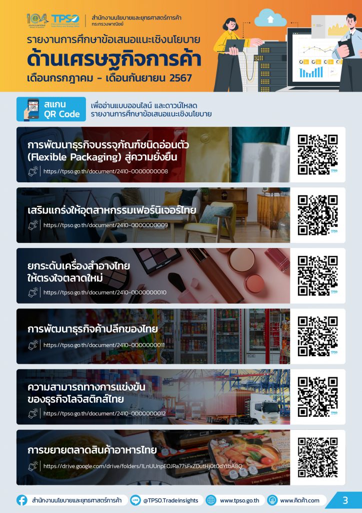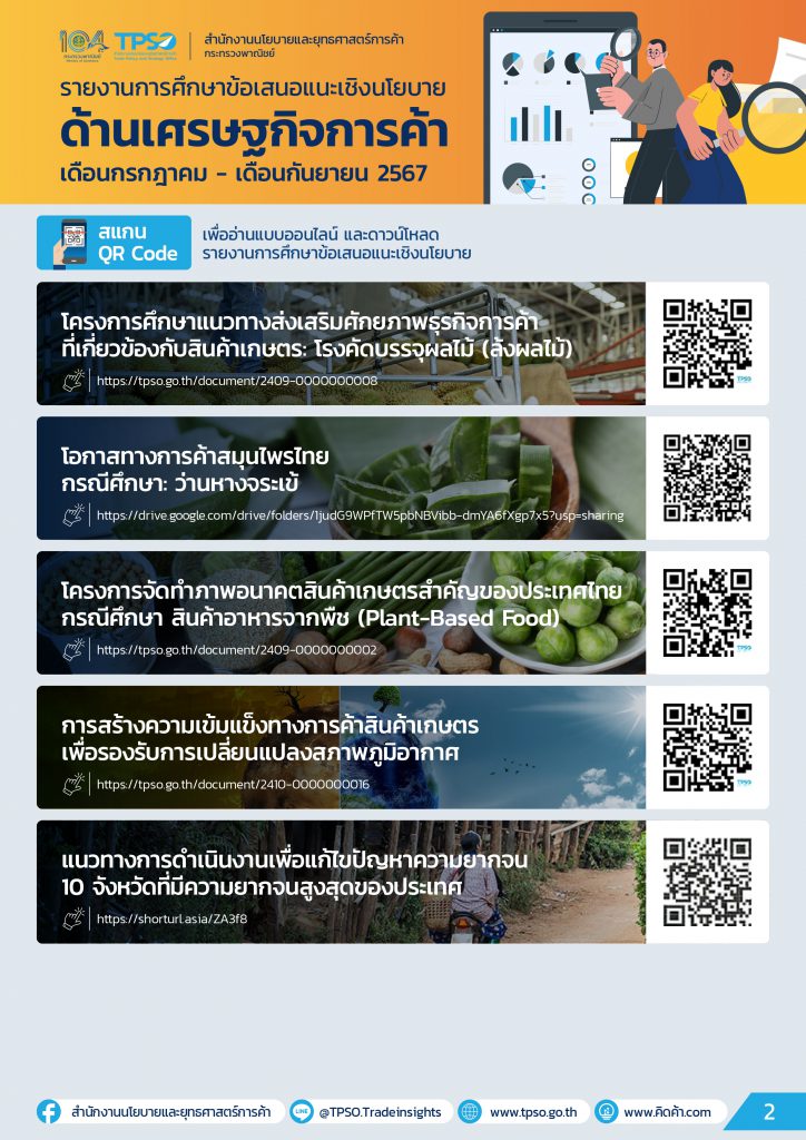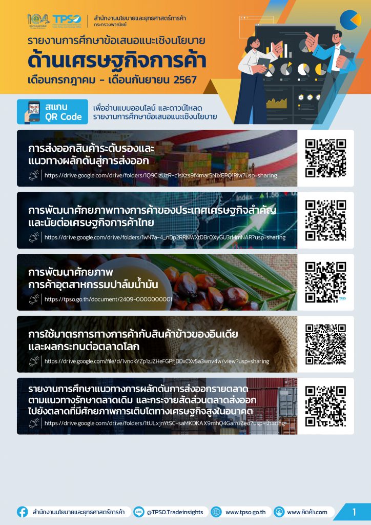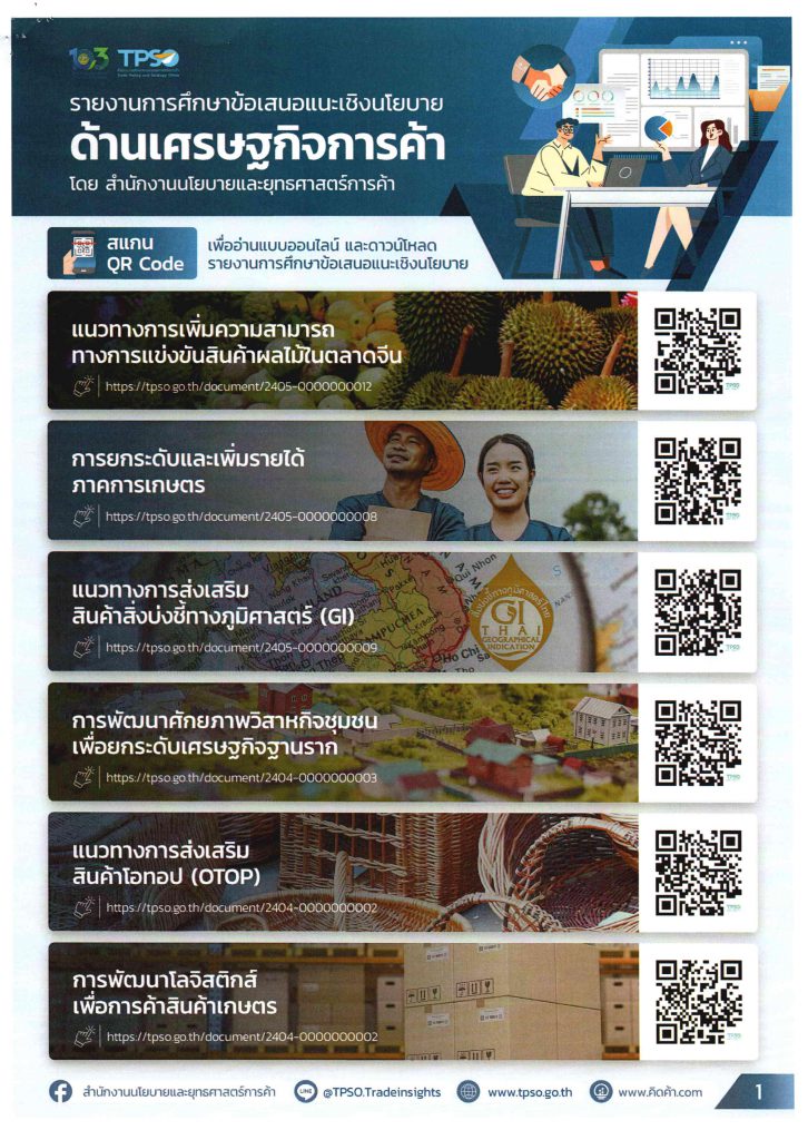ด้วยสำนักงานนโยบายและยุทธศาสตร์การค้า (สนค.) กระทรวงพาณิชย์ ได้มีภารกิจติดตามสถานการณ์เศรษฐกิจการค้า เสนอแนะประเด็นสำคัญ เพื่อชี้นำในการพัฒนาเศรษฐกิจของประเทศ ได้จัดทำรายงานการศึกษาข้อเสนอและเชิงนโยบาย ด้านเศรษฐกิจการค้า