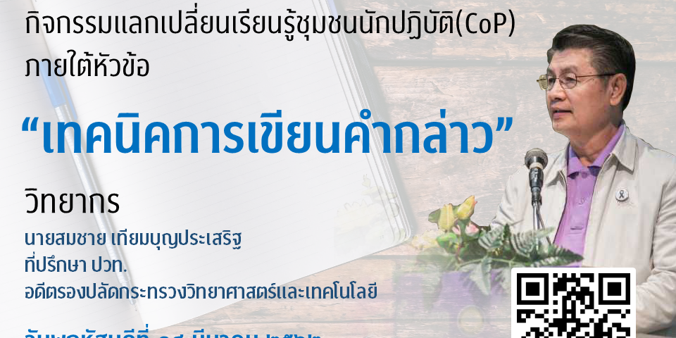 ขอเชิญผู้ที่สนใจเข้าร่วม กิจกรรมแลกเปลี่ยนเรียนรู้ชุมชนนักปฏิบัติภายใต้หัวข้อ