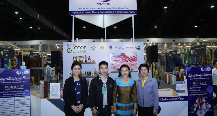 วันนี้ (13 สิงหาคม 2562) เวลา 14.30 น. ดร.อัจฉรา วงศ์แสงจันทร์ รองปลัดกระทรวงการอุดมศึกษา วิทยาศาสตร์ วิจัยและนวัตกรรม ลงพื้นที่ตรวจเยี่ยมชมงานจัดแสดงผลงานการพัฒนาสินค้า OTOP ของกระทรวงการอุดมศึกษา วิทยาศาสตร์ วิจัยและนวัตกรรม (อว.) ดำเนินงานโดย สถาบันวิจัยวิทยาศาสตร์และเทคโนโลยีแห่งประเทศไทย (วว.) ในงานศิลปาชีพ ประทีปไทย OTOP ก้าวไกล ด้วยพระบารมี 2562 ณ อาคารชาเลนเจอร์ 1 -3 อิมแพ็ค เมืองทองธานี โดยมีผู้ประกอบการจากทั่วทุกภูมิภาค นำสินค้า OTOP ที่ได้รับการสนับสนุนผ่านโครงการต่างๆ จากหน่วยงานในสังกัด อว. มากถึง 30 บูธด้วยกัน อาทิ วงษ์ดาวผ้าขาวม้าดีไซน์ จาก จ.บุรีรัมย์, กลุ่มสัมมาชีพย้อมสีธรรมชาติ ผ้าไหมมัดหมี่/ผ้าพื้นสีธรรมชาติ จาก จ.ชัยภูมิ, กลุ่มทอผ้าไทลื้อบ้านเก็ต จาก จ.น่าน, กลุ่มไข่เค็มอบสมุนไพร จาก จ.กาฬสินธุ์, บริษัท บานาน่า ธันเดอร์ จำกัด จาก จ.บุรีรัมย์, กลุ่มสิ่งประดิษฐ์จากเศษผ้าบ้านสบบาย พรมอเนกประสงค์ จาก จ.แพร่ และวิสาหกิจชุมชนพิณมิสา จาก จ.สมุทรสาคร ในโอกาสนี้ ดร.อัจฉราฯ ได้เดินเยี่ยมชมบูธพร้อมให้คำแนะนำกับเหล่าผู้ประกอบการ ในการต่อยอดของสินค้าและผลิตภัณฑ์ให้สามารถกระจายสู่ตลาดได้มากยิ่งขึ้น