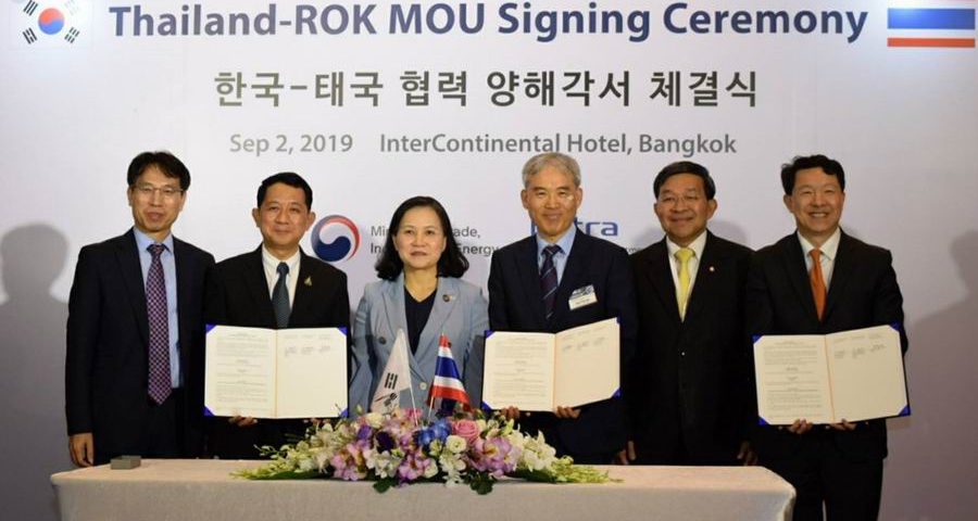 ทั้งนี้ เพื่อให้บรรลุวัตถุประสงค์ดังกล่าวข้างต้น วช. KETEP และ สกสว. จึงได้ตกลงทำความร่วมมือทางวิชาการด้านพลังงาน โดยมีการลงนามในบันทึกความเข้าใจ (MOU) ของ ผู้บริหารทั้ง 3 หน่วยงาน ประกอบด้วย ศาสตราจารย์นายแพทย์สิริฤกษ์ ทรงศิวิไล เลขาธิการคณะกรรมการวิจัยแห่งชาติ ทำหน้าที่ ผู้อำนวยการสำนักงานการวิจัยแห่งชาติ, RIM Chun Taek, President, KETEP และ ศาสตราจารย์ นายแพทย์ สุทธิพันธ์ จิตพิมลมาศ ผอ.สกสว. ในวันที่ 2 กันยายน 2562 เวลา 16.00 – 16.30 น. ณ ห้อง President 2 ชั้น 4 โรงแรม Intercontinental โดยมีผู้บริหารระดับสูงให้เกียรติเข้าร่วมเป็นสักขีพยาน ประกอบด้วย Ms. Yoo Myung-hee รัฐมนตรีการค้า (Minister for Trade) กระทรวงการค้า อุตสาหกรรม และพลังงาน (Ministry of Trade, Industry and Energy, MOTIE) สาธารณรัฐเกาหลี และ รศ. นพ. สรนิต ศิลธรรม ปลัดกระทรวงการอุดมศึกษา วิทยาศาสตร์ วิจัยและนวัตกรรม (อว.)